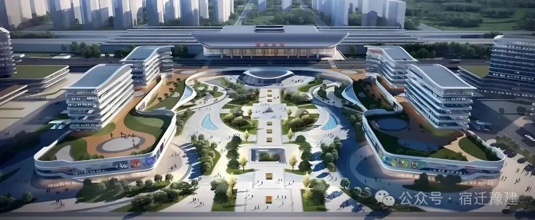 (宿迁东站效果图)商业配套更是得天独厚,步行即享京东智慧城商圈,直线约 3.4km 可达万达广场,多元业态集萃,购物、休闲、娱乐一站式满足,俯仰之间尽揽城市繁华。更难得的是,项目一路之隔便是南外仙林分校宿迁学校,幼儿园至高中一站式优质教育,名校书香萦绕,护航孩子成长之路。