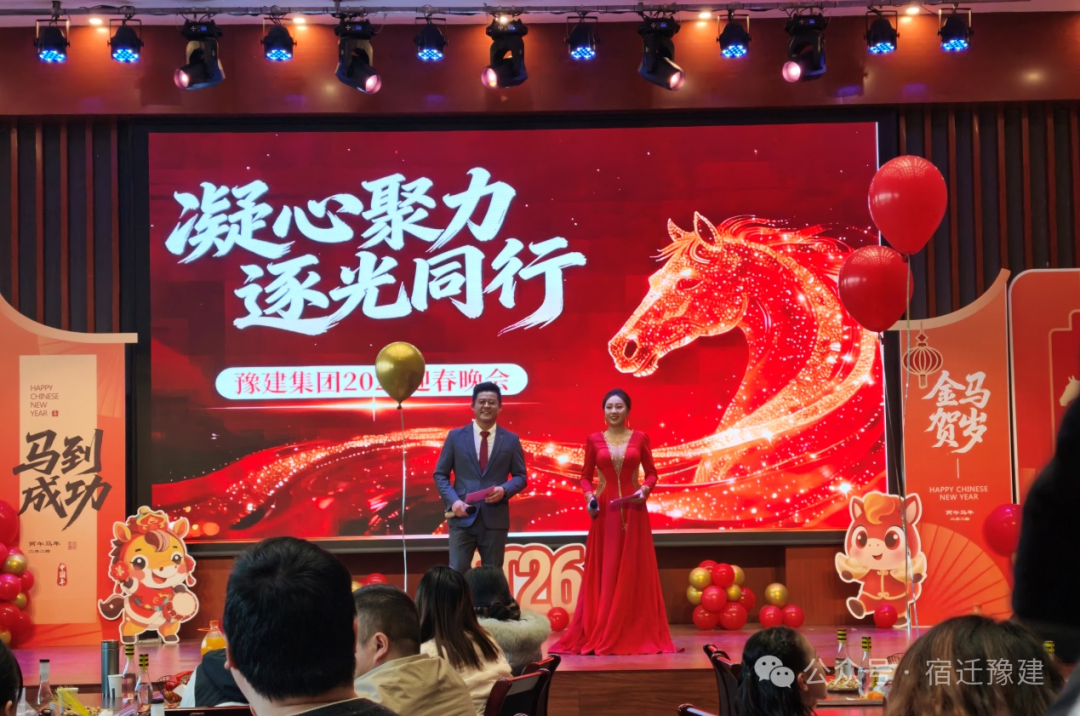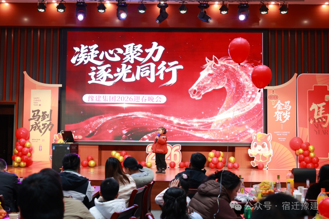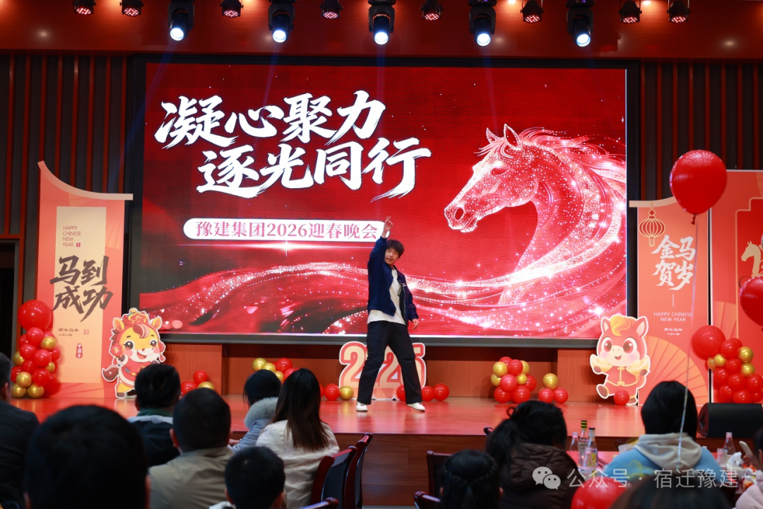 骏马奔腾开新局,同心逐光赴未来。2月7日下午,豫建集团“凝心聚力·逐光同行”2026年迎春晚会温暖启幕。集团领导班子与全体员工、家属欢聚一堂,共迎新春。