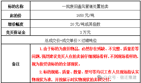 一批废旧通风管道处置拍卖